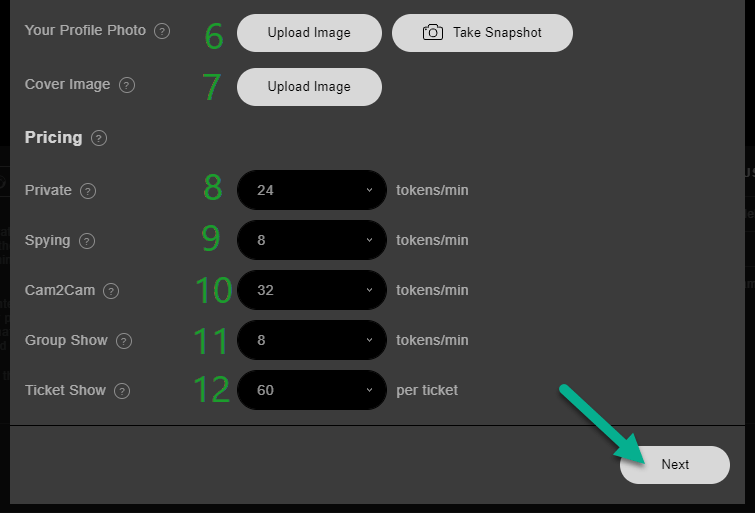 ব্যক্তিগত শো, গ্রুপ শো, Cam2Cam, টিকিট শো-এর জন্য আলাদা রেট নির্ধারণ করুন।